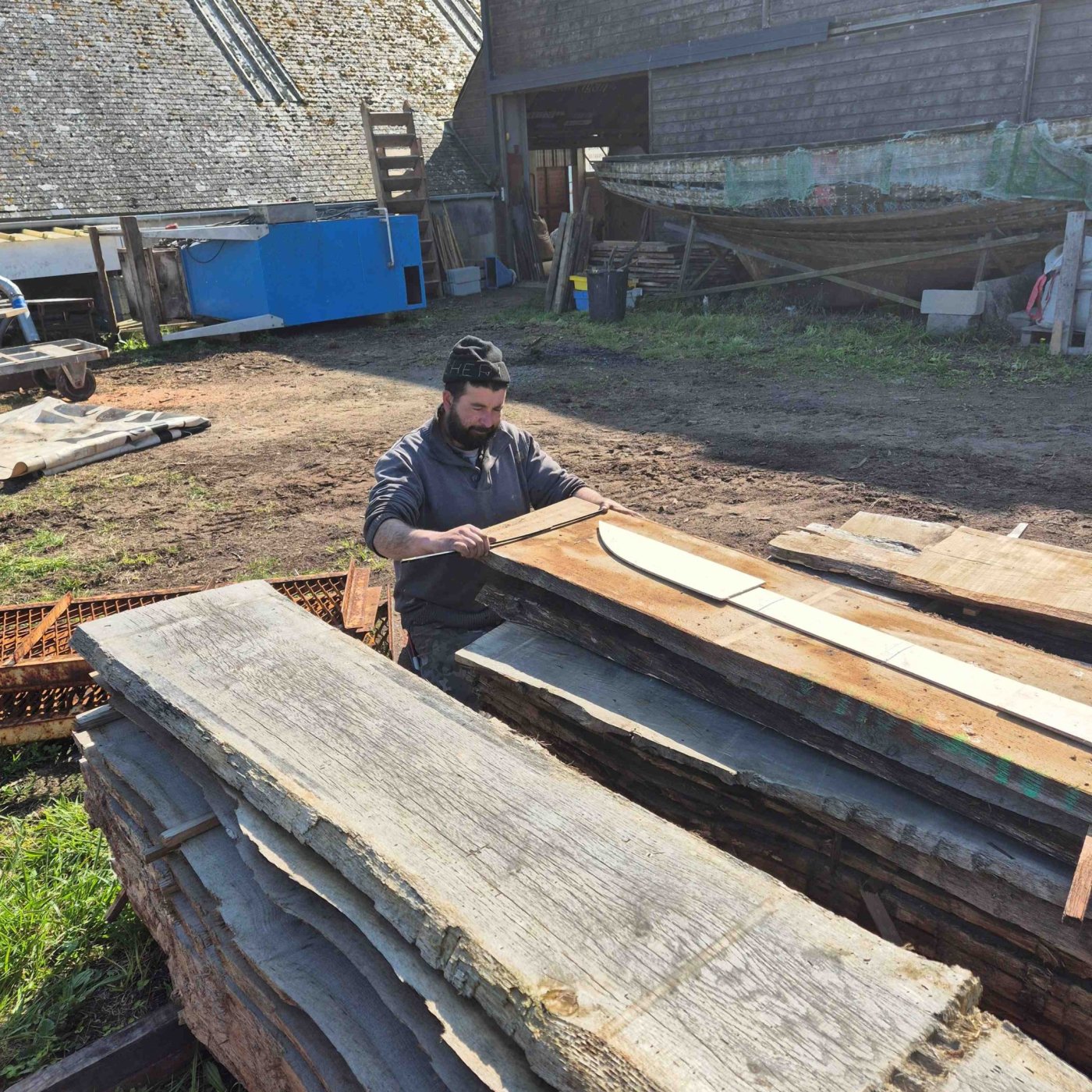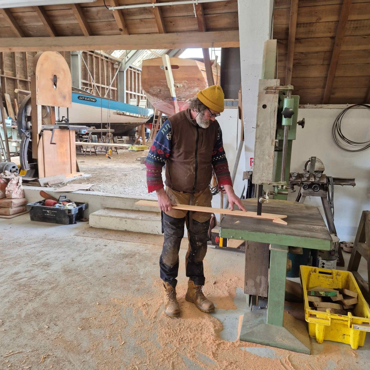 Tous sont diplômés en charpente navale bois et partagent une solide expérience du terrain. Ensemble, ils poursuivent les activités historiques du chantier : construction, réparation, aménagement et entretien de bateaux en bois, pour la pêche comme pour la plaisance. Et pour les projets qui voguent plus loin, ils peuvent aussi embarquer pour des missions sur les côtes de la Manche et de l’Atlantique.